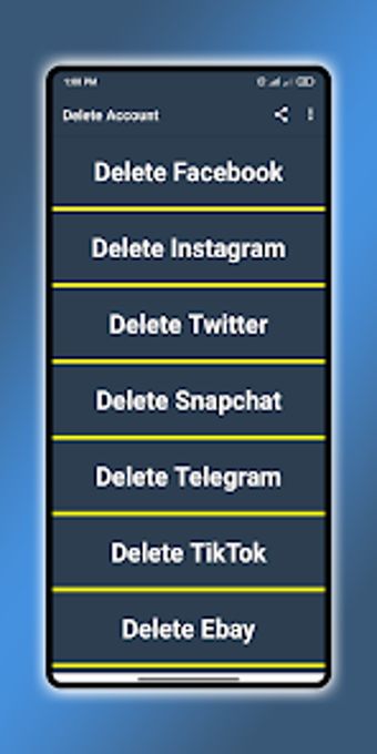 Delete Account es una aplicación diseñada para ayudar a los usuarios a gestionar su presencia en redes sociales de manera sencilla y eficiente. Disponible para Android de forma gratuita, esta herramienta permite acceder rápidamente a los enlaces necesarios para eliminar cuentas de plataformas populares como Facebook, Snapchat e Instagram. La interfaz es intuitiva, lo que facilita la navegación y la localización de las opciones de eliminación sin complicaciones.